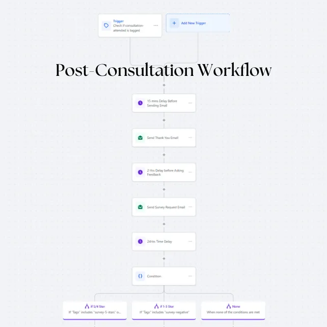 Our real estate workflow systems are designed to streamline every step of your lead journey—from booking consultations to completing intake forms and recovering no-shows. With smart automation in place, your pipeline stays organized, follow-ups run on autopilot, and prospects move smoothly toward closing. This means less manual work for you and a faster, more efficient experience for your clients.