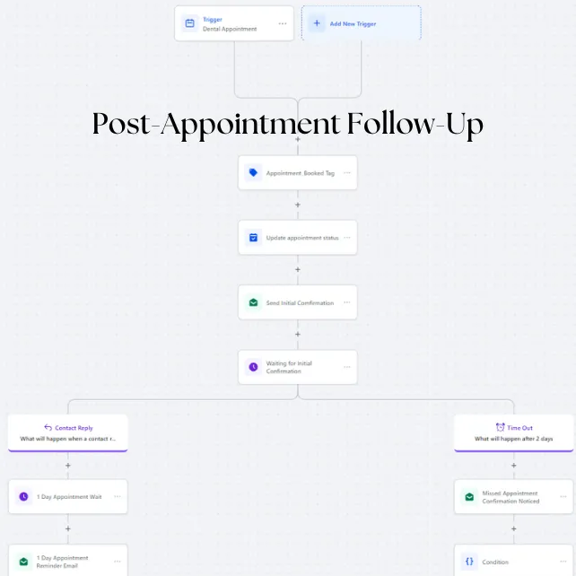 Simplify your dental practice’s scheduling and patient communication with a fully automated booking system. From appointment requests to follow-ups, this system ensures every patient interaction is seamless, timely, and professional. Key workflows include: